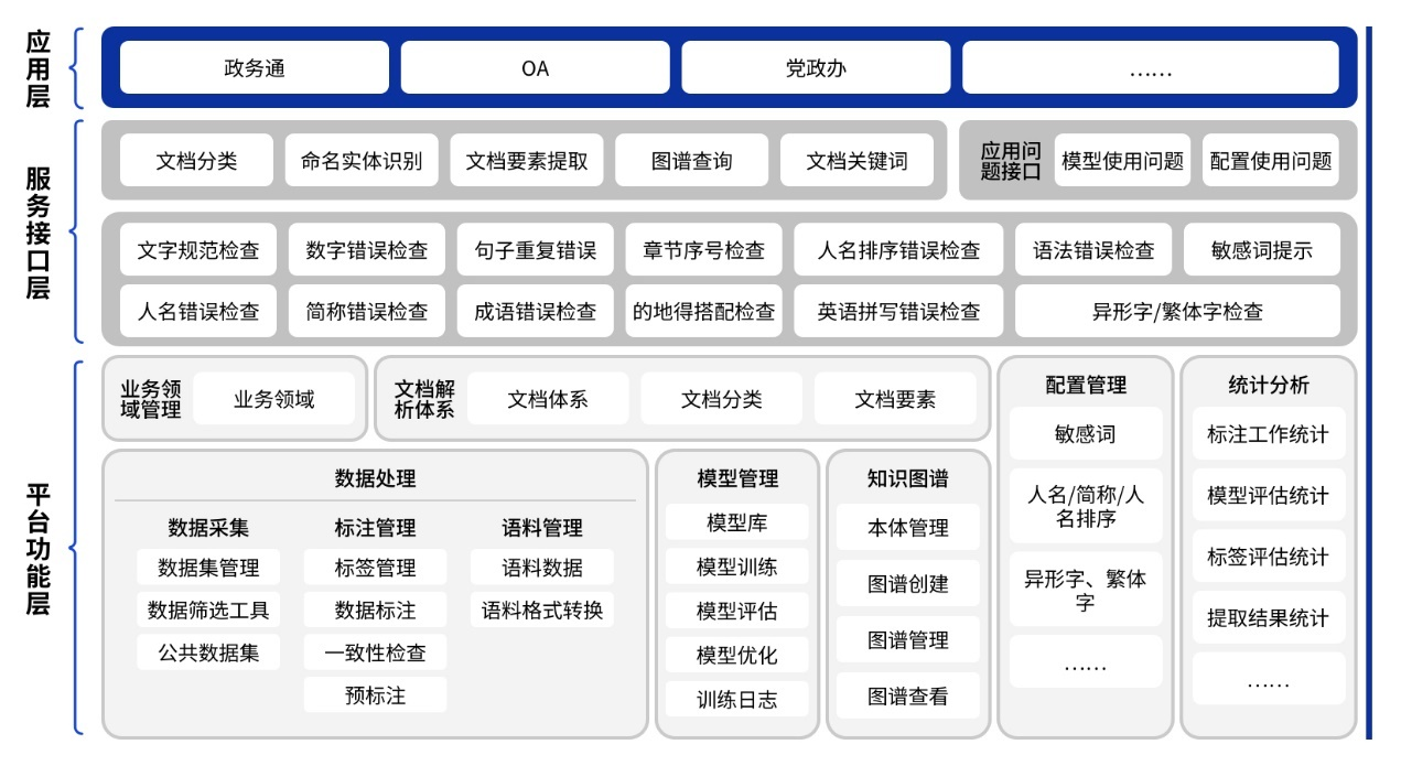 隨著現(xiàn)代社會(huì)的發(fā)展,政府部門(mén)、企事業(yè)單位等都需要頻繁地處理各類(lèi)公文,例如公告、通知、報(bào)告、批復(fù)等,共計(jì)15種類(lèi)別,這些公文要求嚴(yán)格,需要符合不同的規(guī)范化表述和格式排版等要求,公文的發(fā)布質(zhì)量直接關(guān)系到組織工作效率和形象。然而,目前大多數(shù)單位仍然采用人工審核公文的方式,存在審核效率低、漏審錯(cuò)審等問(wèn)題,亟需建立一套高效、便利、易用的智能化公文內(nèi)容審核系統(tǒng)。智能化公文審核系統(tǒng)是公文審核是適應(yīng)現(xiàn)代化辦公、提升效率,進(jìn)行數(shù)據(jù)化轉(zhuǎn)型的必然路徑。