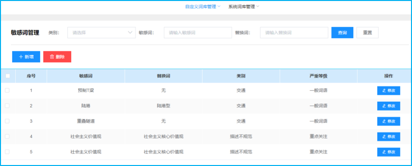 對于屬于嚴(yán)重錯誤類型的錯別字或敏感詞,如果用戶強(qiáng)制進(jìn)行保存,系統(tǒng)將通過發(fā)送在線短消息、手機(jī)短信等方式,及時通知系統(tǒng)管理人員,由管理人員進(jìn)行緊急干預(yù)和處理,以確保內(nèi)容安全。